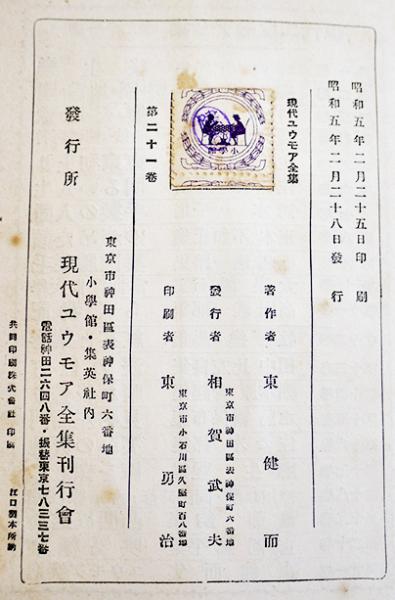 ユウモア突進 東健而集/川原久仁於装幀挿畫 B6判初版 現代ユウモア全集刊行会 昭和5年