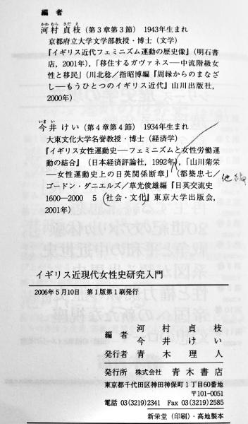 イギリス近現代女性史研究入門 河村貞枝+今井けい編 A5判カバ美本 靑木書店 2006年