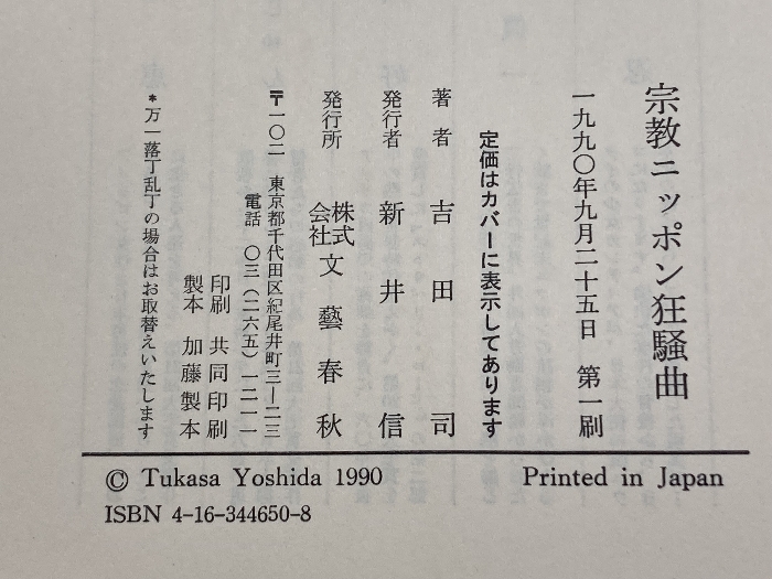 宗教ニッポン狂騒曲 文藝春秋 吉田 司