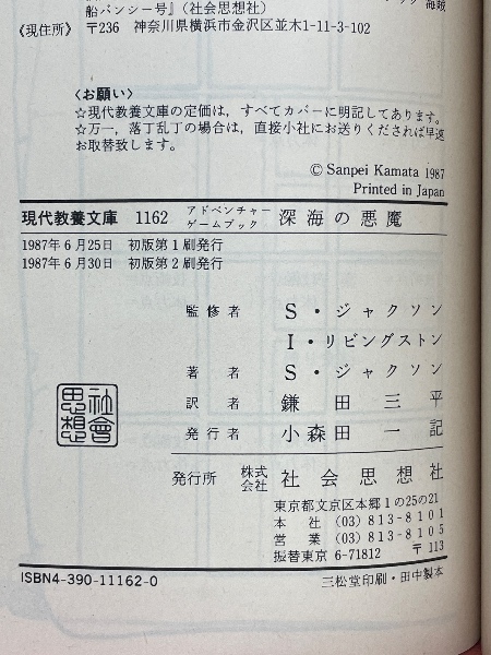 アドベンチャーゲームブック 深海の悪魔 <現代教養文庫 1162>