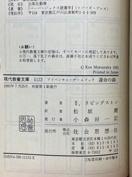 アドベンチャーゲームブック 運命の森 <現代教養文庫 1123>