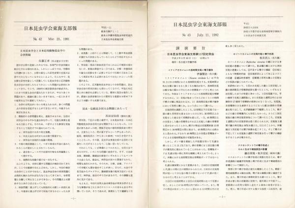 日本昆虫学会東海支部報42号、43号