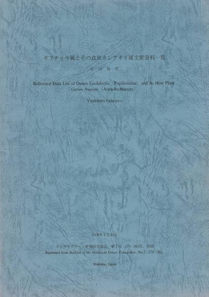 ギフチョウ属とその食草カンアオイ属文献資料一覧(ホシザキグリーン財団研究報告、第7号:179-260頁、別刷)