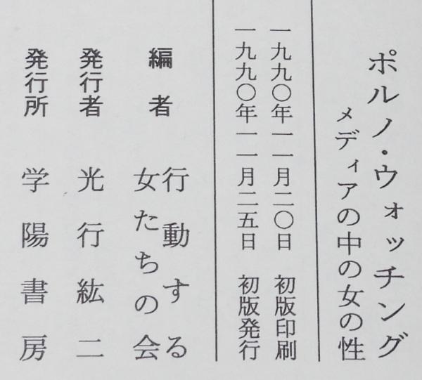 • 解説 ポルノ・ウォッチング メディアの中の女の性 学陽書房 1990年11月初版 四六判ハードカバー帯付.