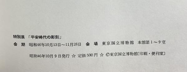 【図録】特別展 平安時代の彫刻 東京国立博物館 昭和46年