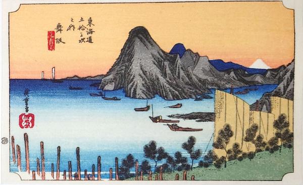• 解説 D26020031〇彩色木版画 ハガキサイズ 東海道五十三次 舞阪宿 保永堂版 広重 複刻昭和年代〇和本古書古文書