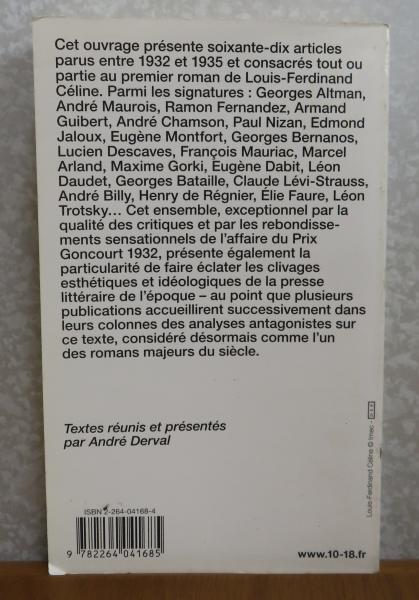 【10/18】 「夜の果ての旅」 セリーヌ論集 1932-1935 Voyage au bout de la nuit de louis-ferdinand Céline critiques 1932-1935 〔フランス語〕