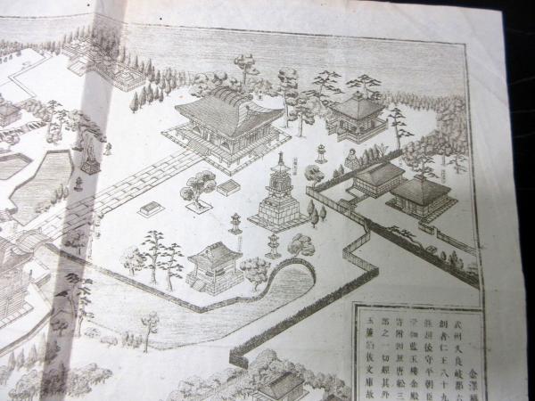 明治期古地図鳥瞰図「金沢称名寺略縁起」1点