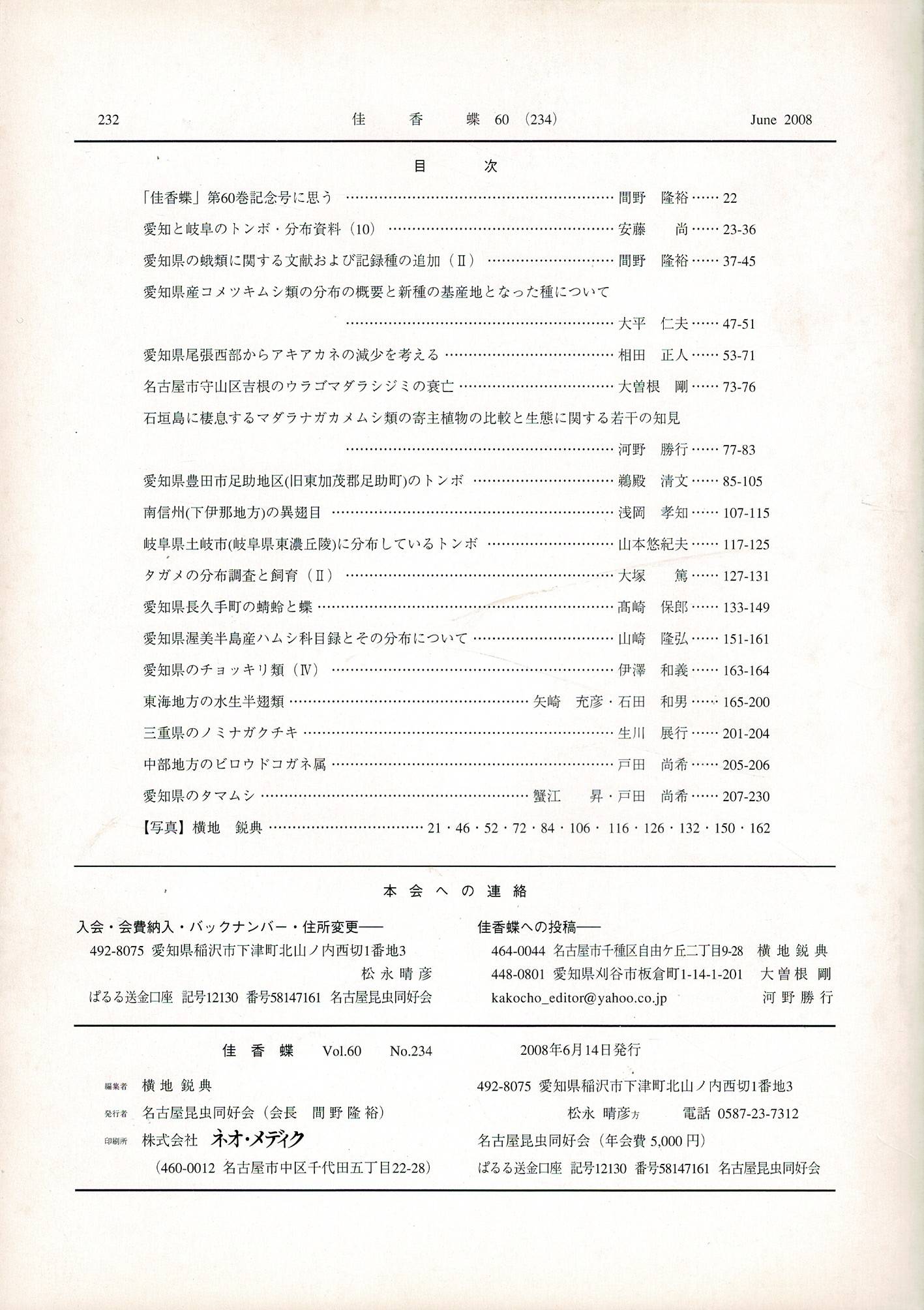 佳香蝶 Vol.60 No.234 2008年6月 第60巻 記念号 1巻1号-