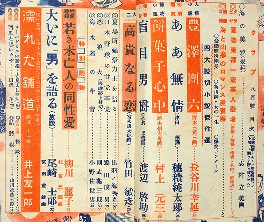 • 解説 長谷川幸延「豊澤團六」、村上元三「餅菓子心中」、渡辺啓助「盲目男爵」、竹田敏彦「高貴なる恋」、柳川麗子「若き未亡人の同性愛」、他。