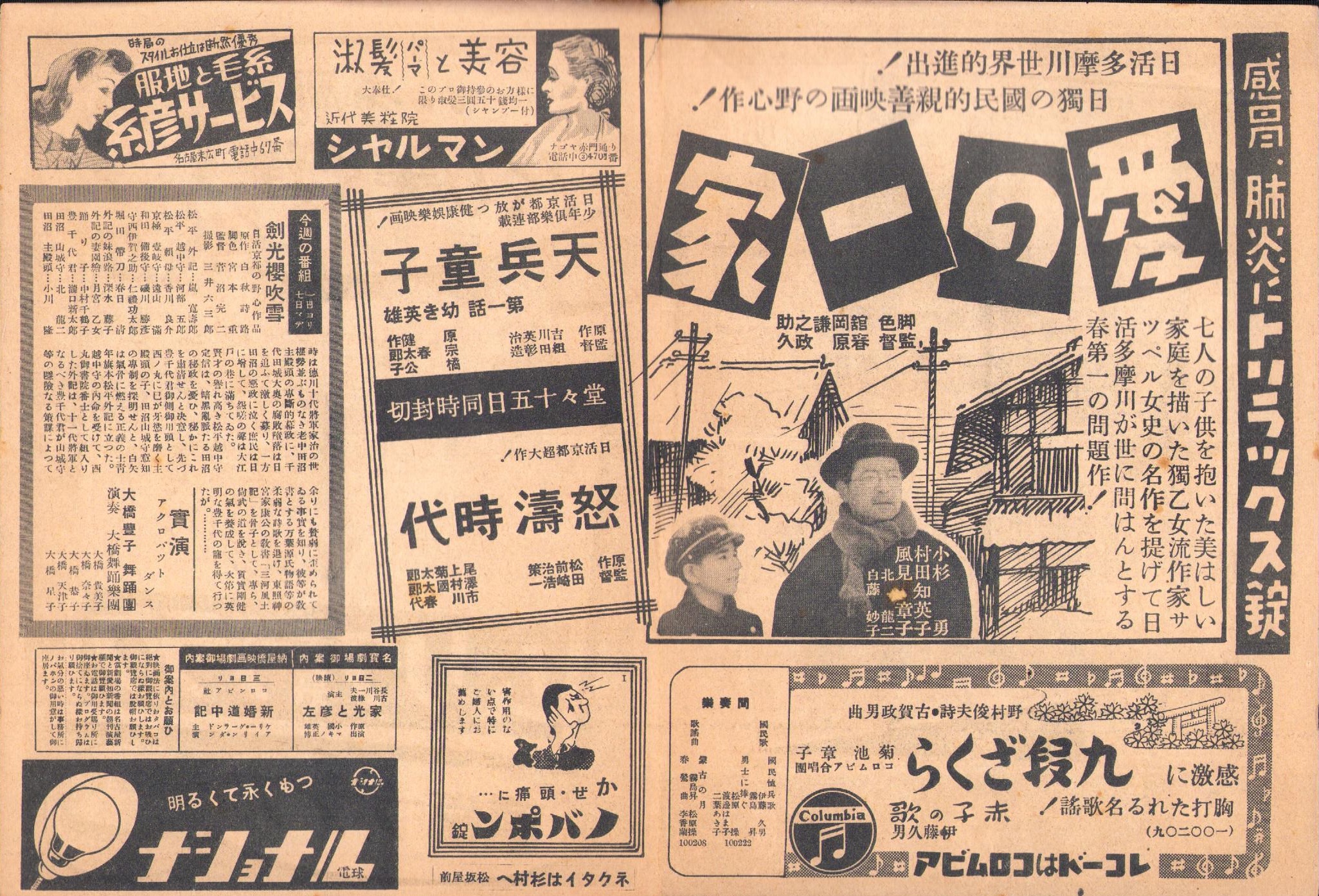 • 著者 〈上映中「剣光桜吹雪」原作・白秋詩路、監督・菅沼完二、出演・嵐寛寿郎、実演 大橋豊子舞踊団「アクロバット・ダンス」〉〈予告「愛の一家」監督・春原政久、出演・小杉勇〉
