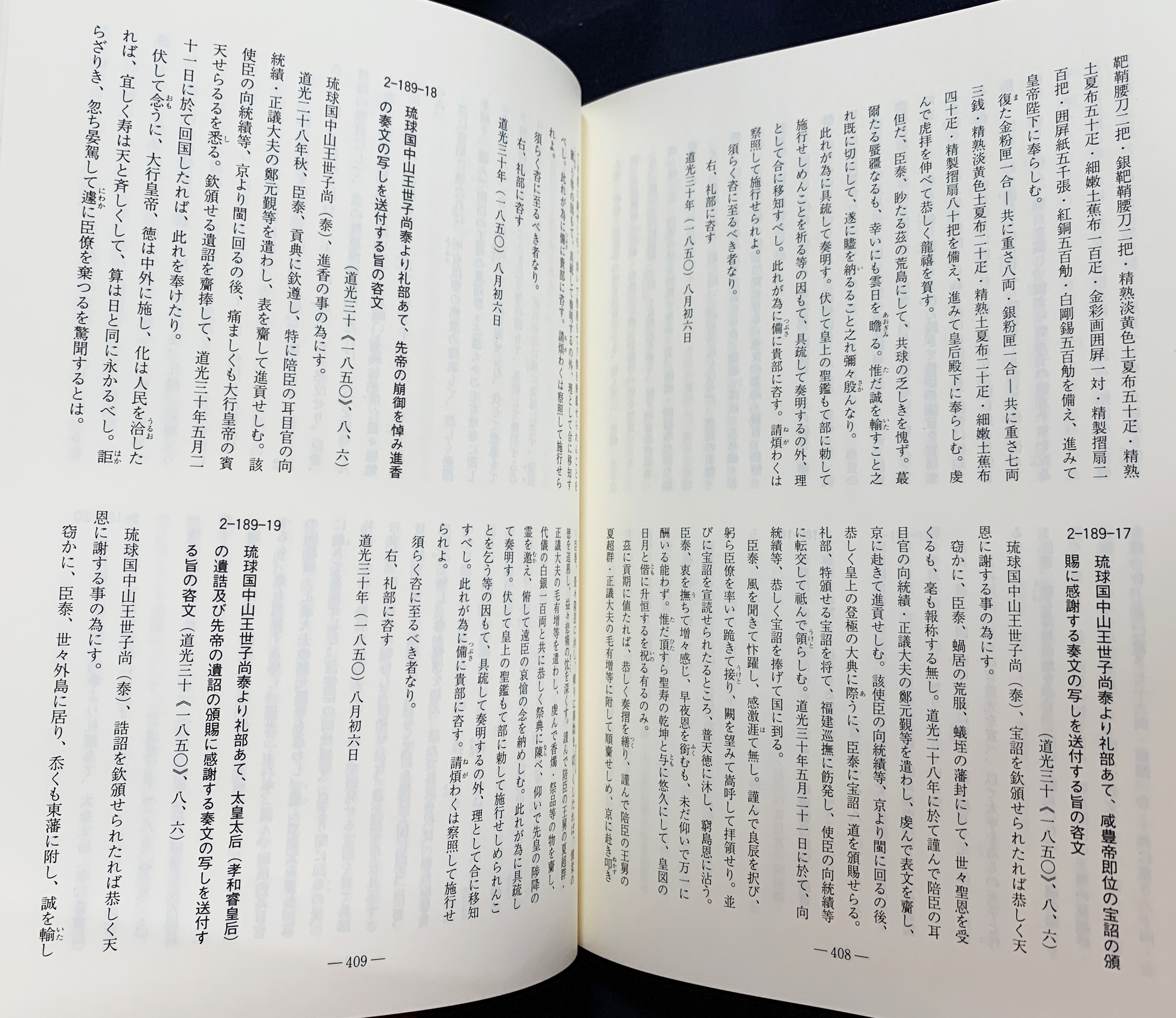 琉球王国が1424年から1867年までの約440年間にわたり、中国(明・清)や朝鮮、東南アジア諸国と交わした外交文書を集成した漢文史料集。