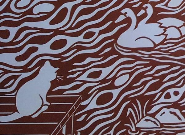 D26020031〇伊勢型紙 手彫り 猫とアヒル アート 伝統和紙工芸 貼り絵 切り絵 昭和レトロ インテリア〇和本古書古文書
