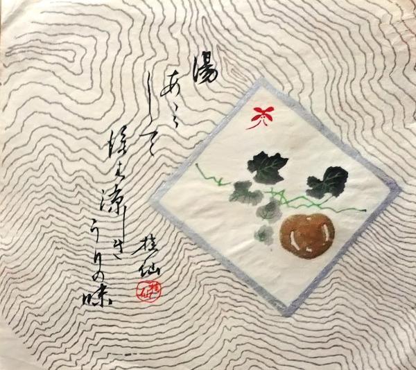 彩色木版画 団扇絵 うちわ絵 湯浴み 瓜 昭和年代〇和本古書古文書
