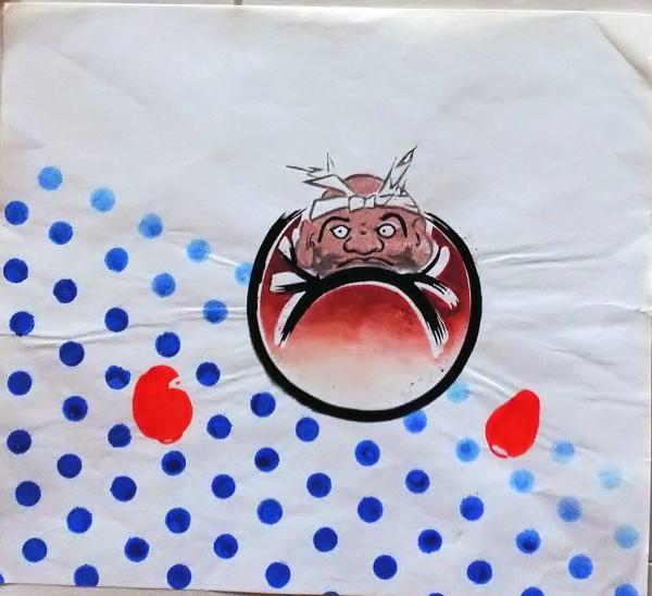 • 解説 D26020518〇彩色木版画 団扇絵 うちわ絵 だるま 昭和年代〇和本古書古文書