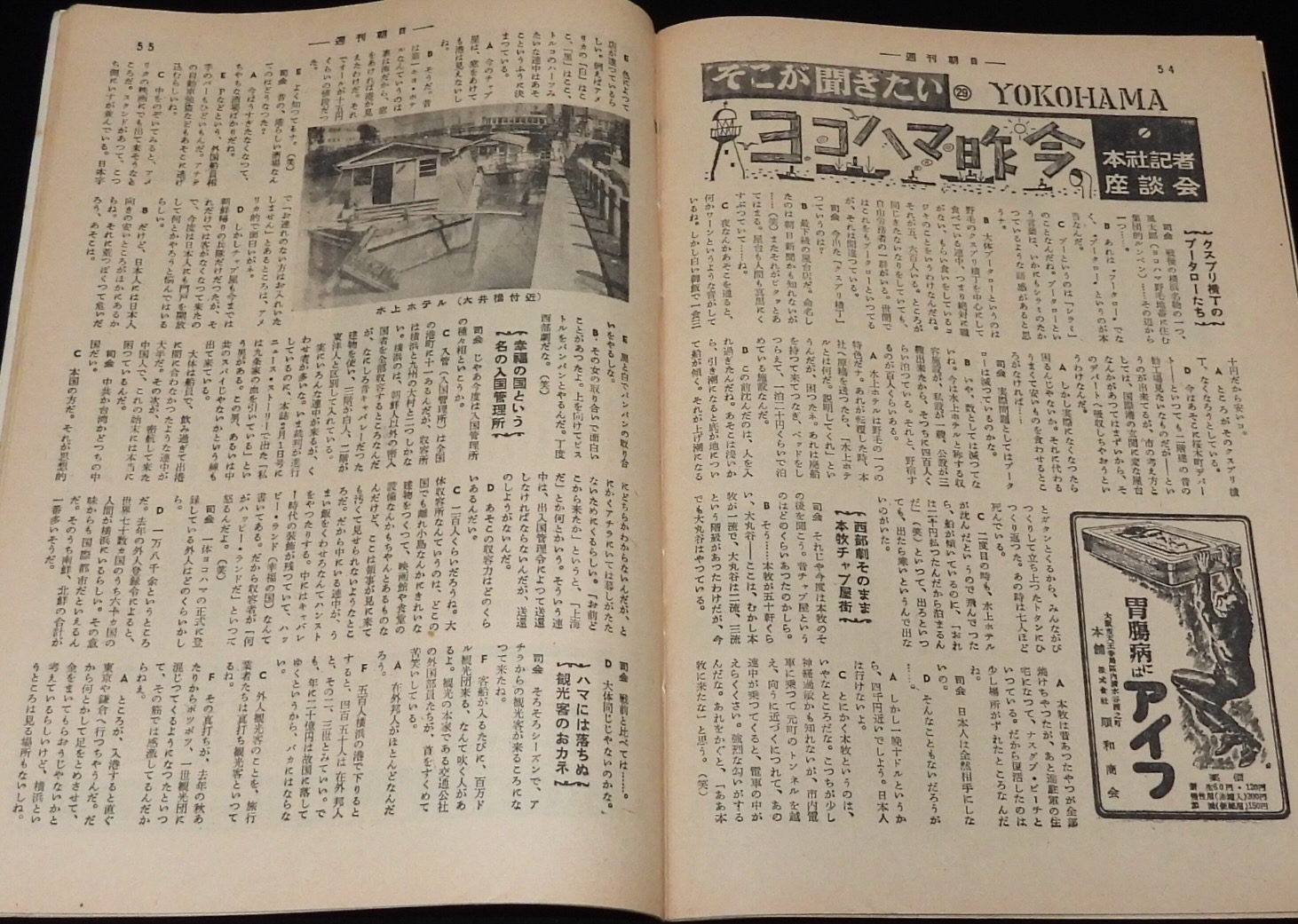 「本社記者座談会:そこが聞きたい/ヨコハマ昨今/クスブリ横丁/本牧チャブ屋街/麻薬の密貿易/山下公園お接収/南京街の中国人」