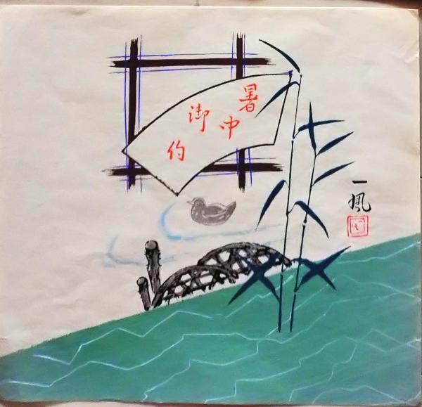 D26020524〇彩色木版画 団扇絵 うちわ絵 暑中 昭和年代〇和本古書古文書
