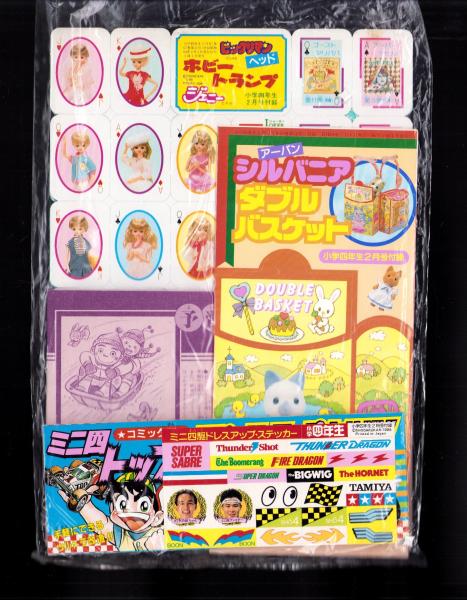 (付録)ゾイド貯金箱/ビックリマン・ジェニー・ホビートランプ/コミック版ミニ四トップのスピード・アップ大作戦ほか 6点一括 -小学四年生平成1年2月号付録-