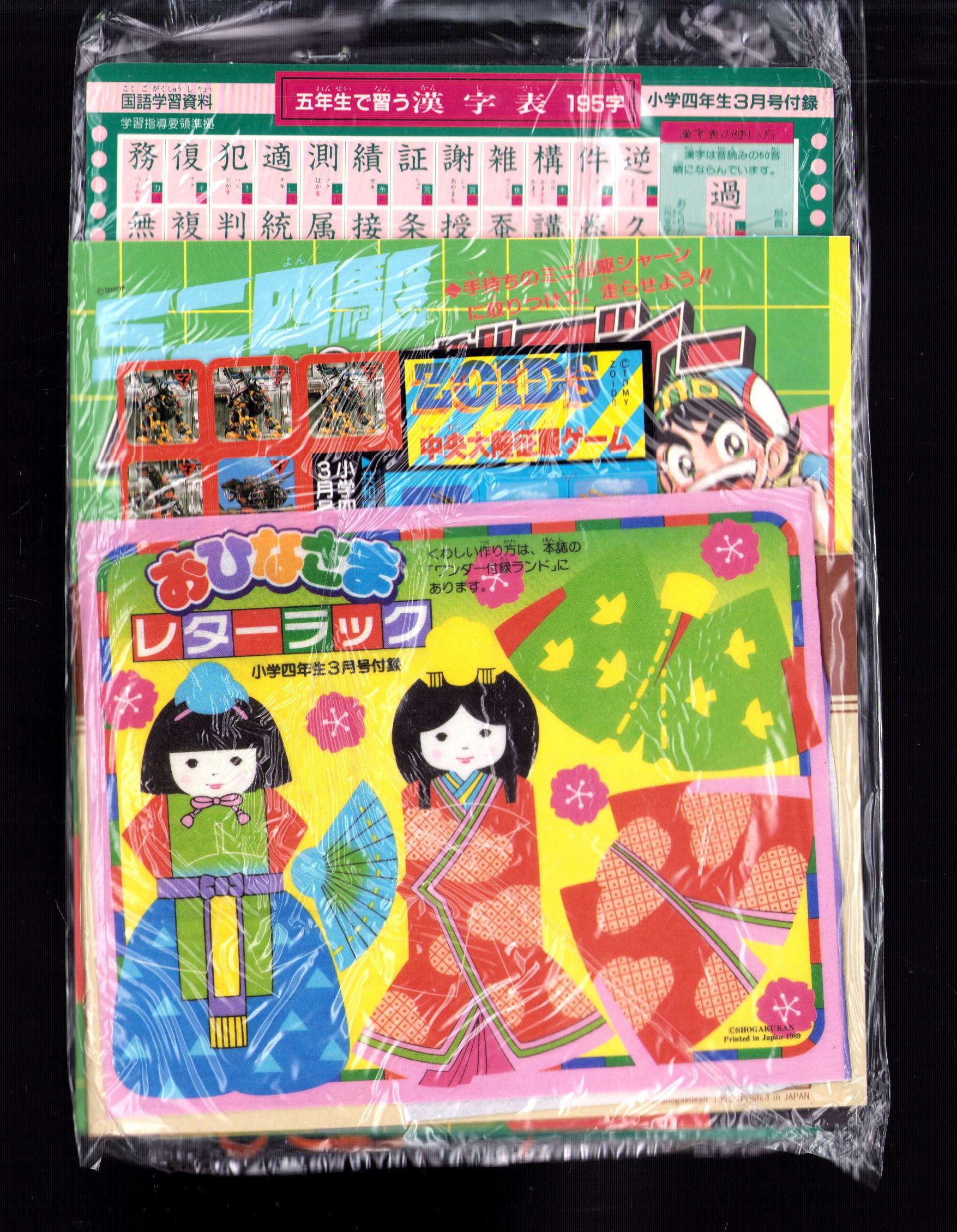 (付録)ミニ四駆ペーパーボディー/おひなさまレターラック/予習復習コーチ他 4点一括 -小学四年生平成1年3月号付録-