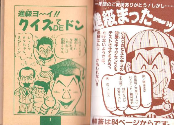 • 解説 新品、美品、「進級ヨ~イ!!クイズDEドン」裏表紙上部に少経年しみ