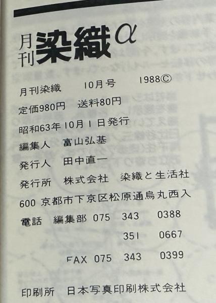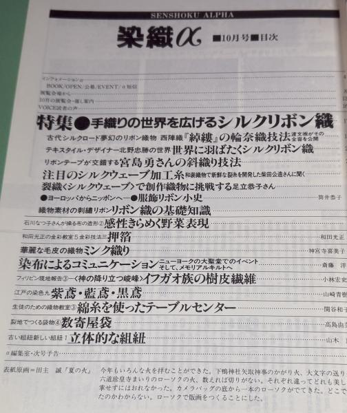 月刊 染織α 1988年10月 No.91  特集 手織りの世界を広げるシルクリボン織 / 和田光正の金彩教室 (5) 金彩技法 (三) 押箔 / 華麗な毛皮の織物 ミンク織り   神宮寺喜美子