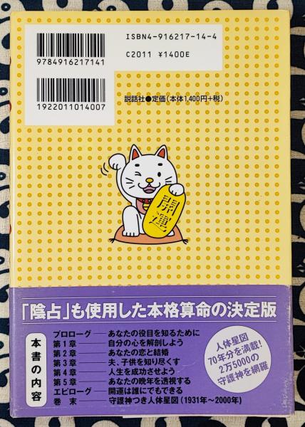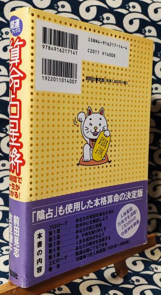 【内容説明】 すべての人に「役目」がある。与えられた役目を果たせば、人生は充実する。その役目の果たし方を教えるのが、算命占星術!本当に役立つ人生アドバイスがここにある。「陰占」も使用した本格算命の決定版。 目次 【プロローグ】あなたの役目を知るために 【第1章】自分の心を解剖しよう 【第2章】あなたの恋と結婚 【第3章】夫、子供を知り尽くす 【第4章】人生を成功させよう 【第5章】あなたの晩年を透視する 【エピローグ】開運は誰にでもできる 【著者等紹介 前田晃志[マエダコウジ] 1953年、東京都生まれ。算命学研究家。算命晃聖塾塾長。警察官勤務を経て、整体治療院経営のかたわら、算命学を学ぶ。1992年『算命晃聖塾』を開塾し、短期集中型の授業で好評を得る。著書に『算命占星術・干支暦』『算命占星術・基礎編』(算命晃聖塾)がある。十大主星は、みんなを元気にするのが趣味の禄存星 牧亜津子[マキアツコ] 1956年、滋賀県生まれ。ティーン向け月刊占い誌『マイバースデイ』(実業之日本社)などの編集にたずさわったあと、フリーランスライターとして独立。その後、偶然出会った算命学に興味を持ち、前田晃志氏に師事。月刊女性誌『モニク』(実業之日本社)などで、執筆中。十大主星は、あくせくするのが嫌いな鳳閣星