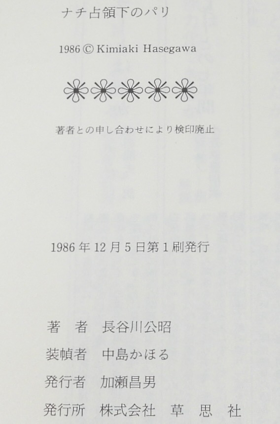 • 解説 ナチ占領下のパリ 長谷川公昭 草思社 1986年5月第1刷 四六判ハードカバー帯付.