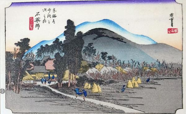 彩色木版画 ハガキサイズ 東海道五十三次 石薬師宿 保永堂版 広重 複刻昭和年代〇和本古書古文書