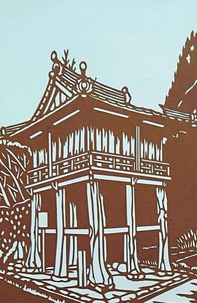 〇伊勢型紙 手彫り 高殿 高楼 日本建築の美 アート 伝統和紙工芸 貼り絵 切り絵 昭和レトロ インテリア〇和本古書古文書