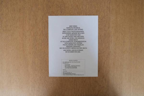 スターンは、マリリン・モンロー晩年に撮影された一連の写真群「The Last Sitting」で知られており、本品はその関連広告として制作された印刷物とされる。