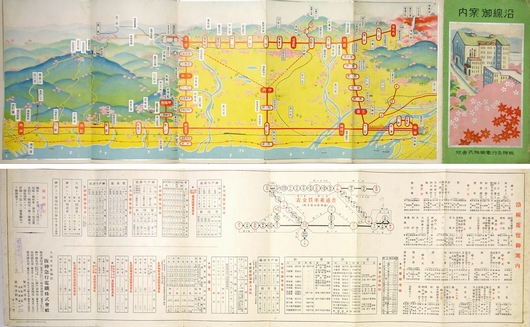 (裏)沿線遊覧御案内、普通乗車券表、初発終発時刻、他。