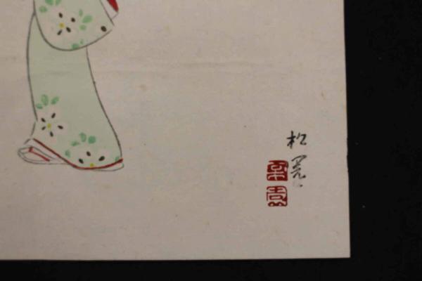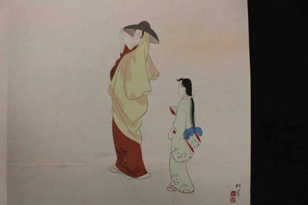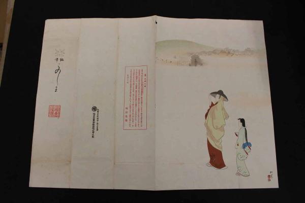 5 3 木版包紙 木島神社と美人(仮題) 上村松園画 鳩居堂 木版画 引札