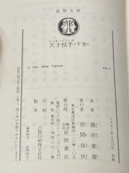 天才投手 下巻 (徳間文庫 406-2) 徳間書店 藤原 審爾