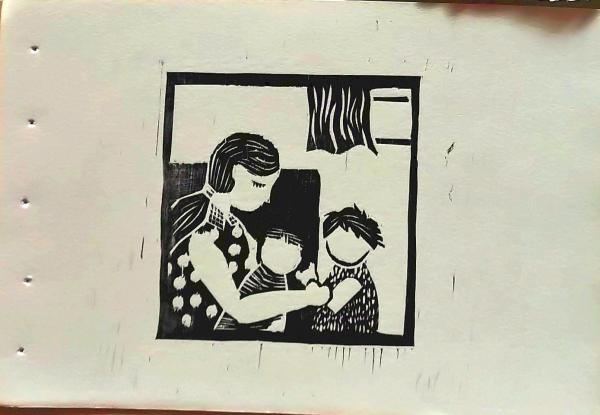 D26021309〇彩色木版画 触れ合い yoshimi kuzuu oregon 版画家 昭和年代〇和本古書古文書