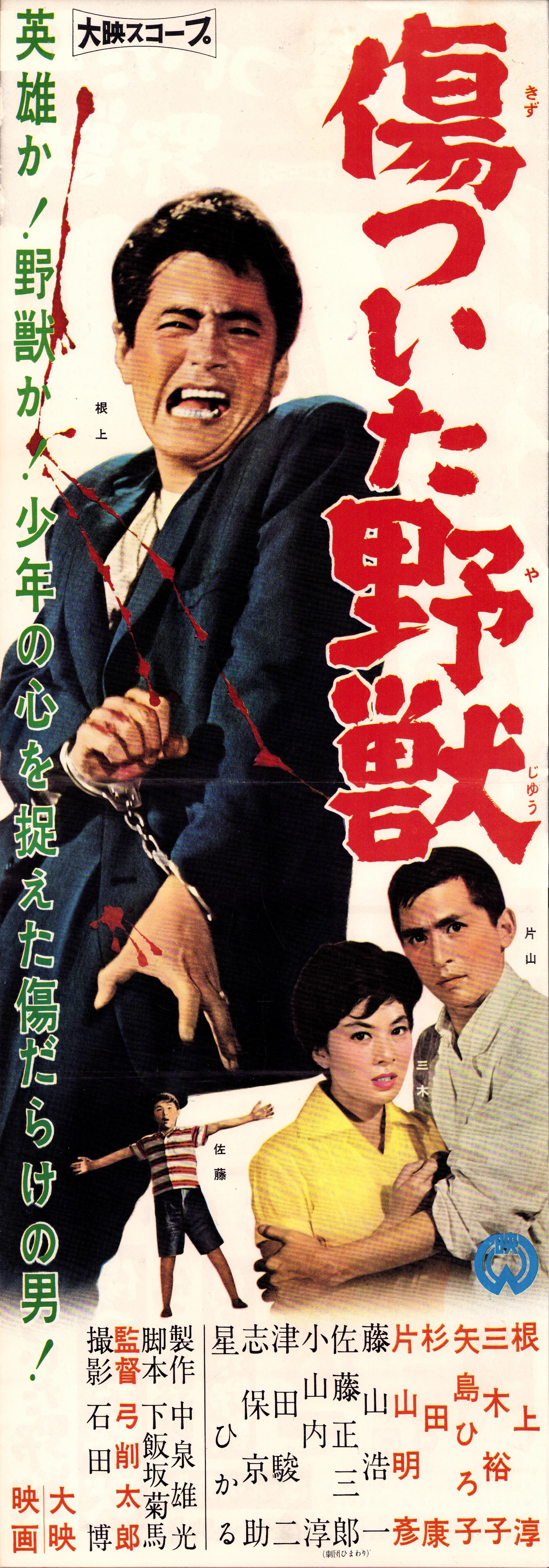 (映画スピードポスター型プレスシート)大映「傷ついた野獣」