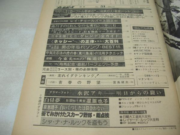 週刊プレイボーイ NO.51 1975年12月23日号 ハニーレイヌ 表紙 水沢アキ 星亜也子 泉恵理子 岩崎志乃 森晶子(インタビュー記事) ノーマ・ベネット・巻中3折ピンナップ