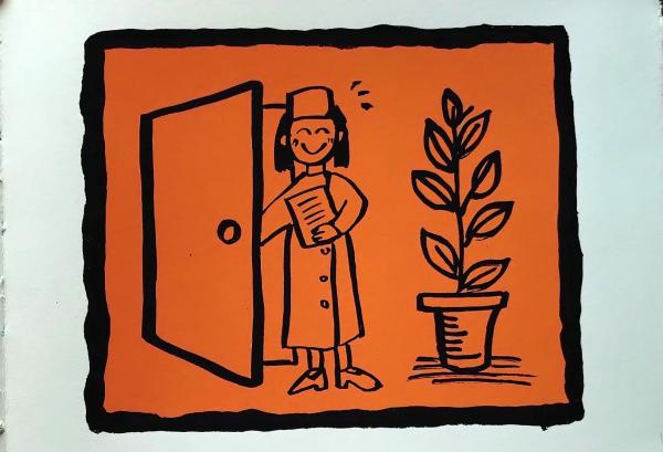 D26021316〇彩色木版画 CAT's EYE 目の治療 yoshimi kuzuu oregon 版画家 昭和年代〇和本古書古文書