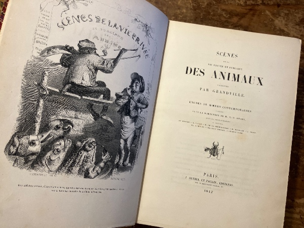 【初版初刷 グランヴィル挿絵】(仏)動物たちの私生活と公生活の情景 バルザック、ジョルジュ・サンド他テキスト 全2巻 Scenes de la vie privee et publique des animauz vignetes par Grandville. Etudes de moeurs contemporaines publiees sous la direction de M. P.-J. Stahl...