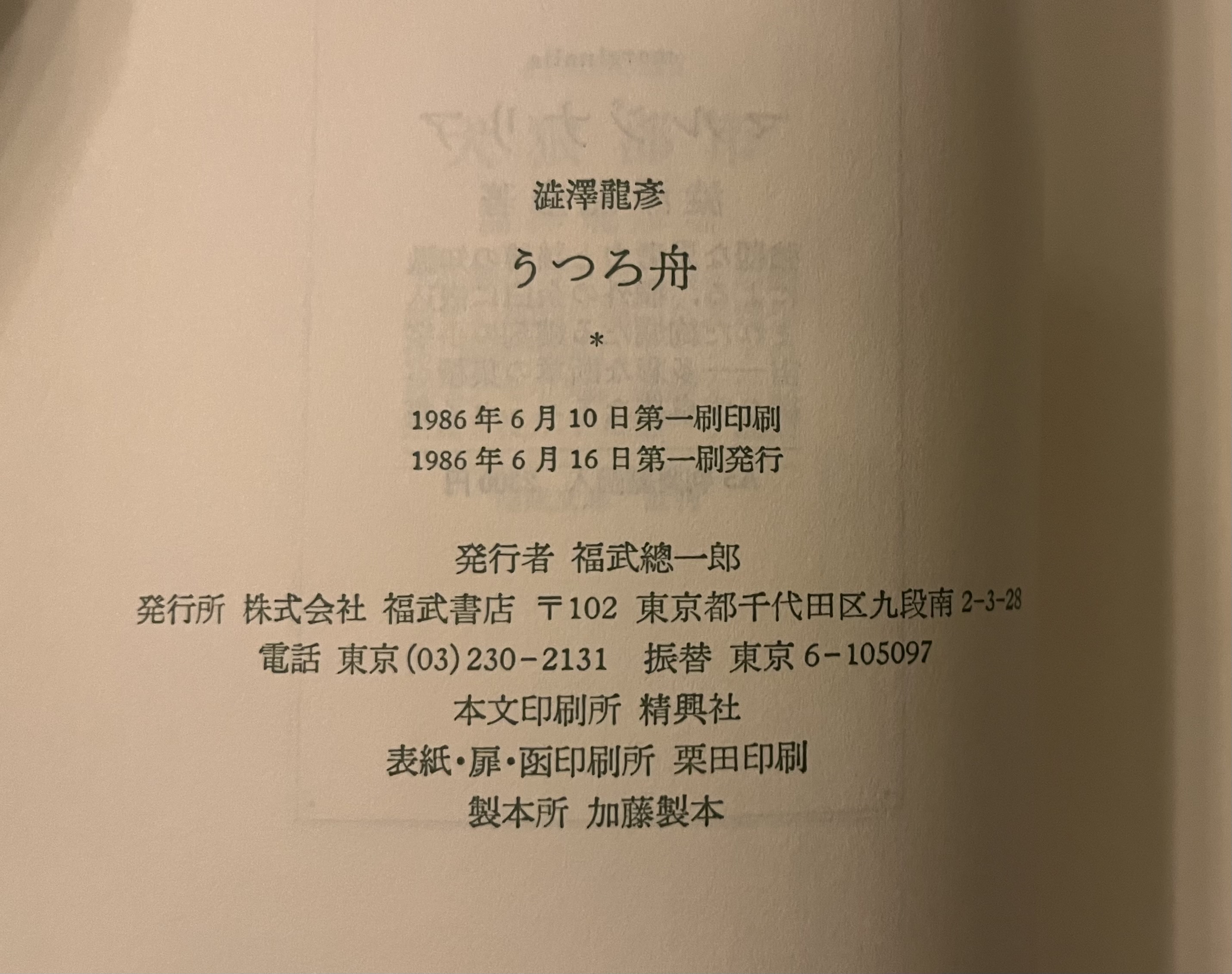 澁澤龍彦 福武書店 初版