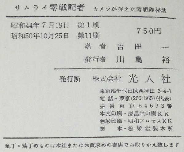• 解説 サムライ零戦記者 吉田一 光人社 昭和50年10月第11刷 B6判.
