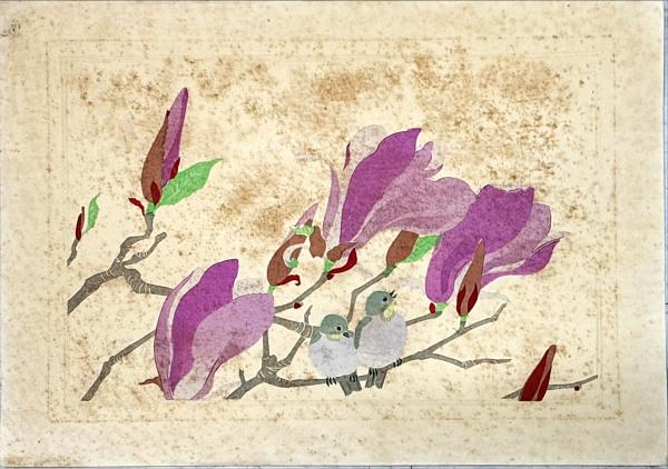 徳力富吉郎木版画 木蓮:花尽の内