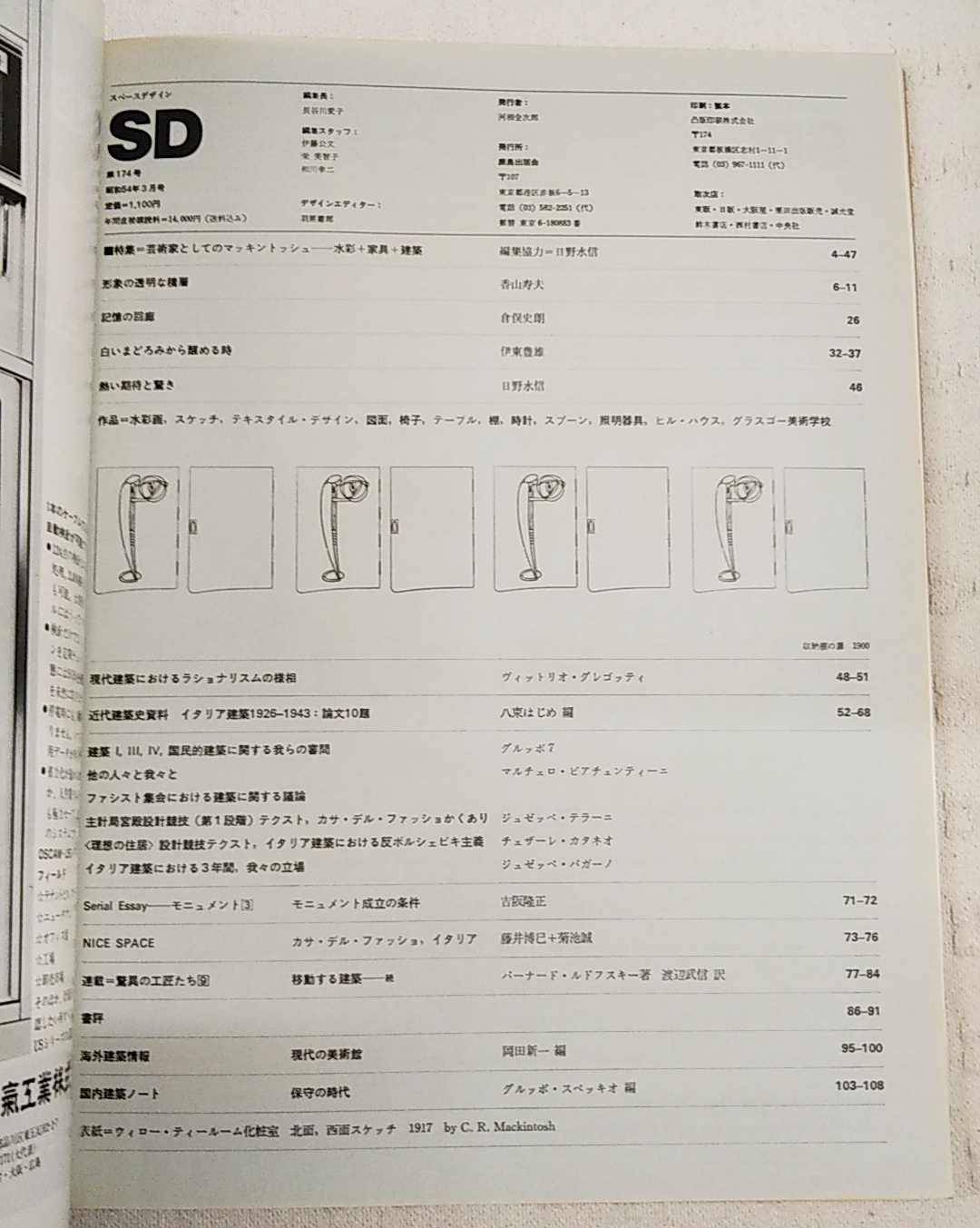 SD スペースデザイン 1979年3月号 第174号 ●特集●芸術家としてのマッキントッシュ ●近代建築史資料 イタリア建築1926-43