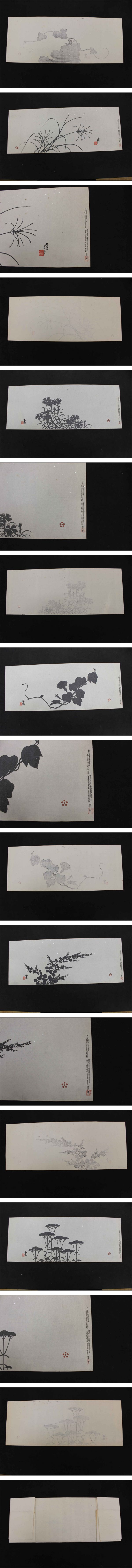 6 5 ①複製木版画 谷文晁筆 秋の七草 重要木版保存会 明治47年 木版墨刷 約19×50㎝ 7枚
