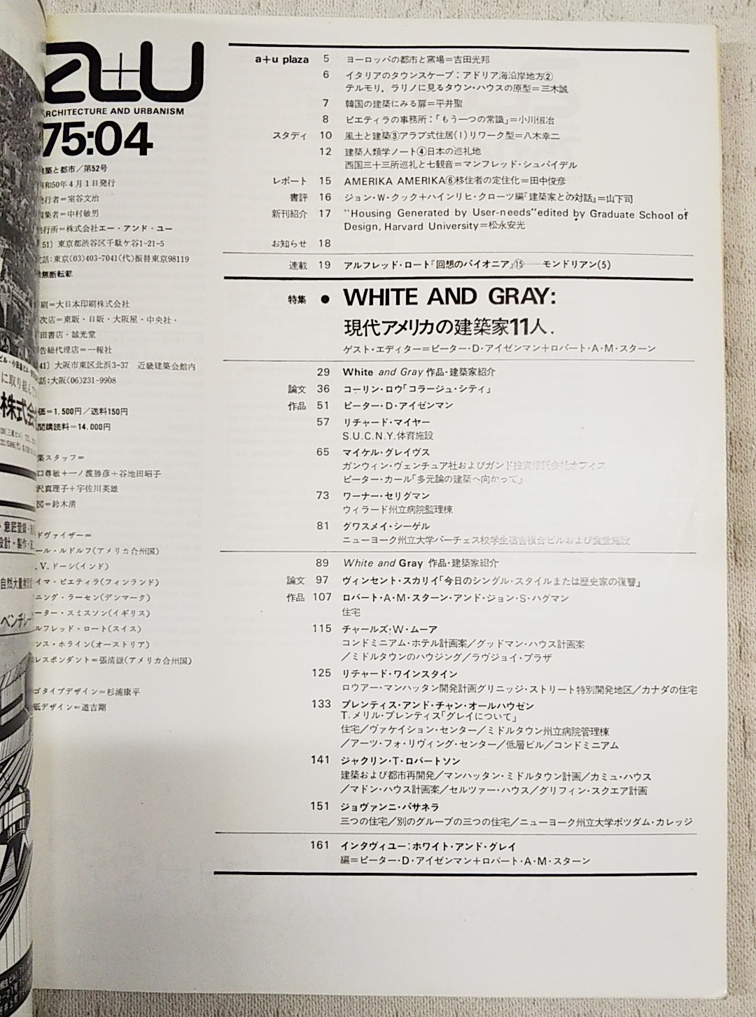 建築と都市 a+u 75:04 1975年4月号 No.52 ●特集:現代アメリカの建築家11人 WHITE AND GRAY