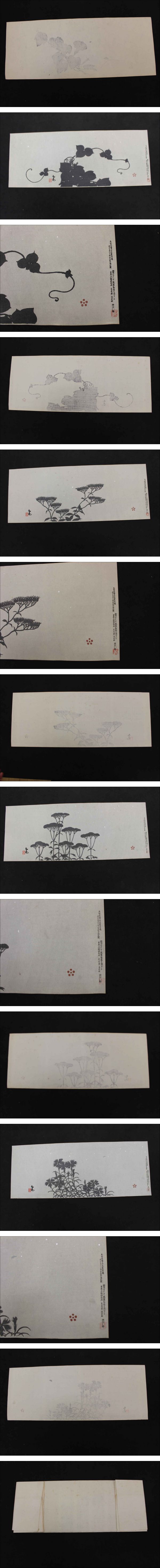 6 5 ②複製木版画 谷文晁筆 秋の七草 重要木版保存会 明治47年 木版墨刷 ススキ欠 約19×50㎝ 6枚