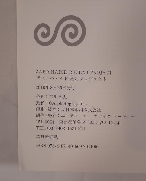 説明:『ZAHA HADID RECENT PROJECT』は2010年にエーディーエー・エディタ・トーキョーから刊行され、二川幸夫の企画、GA photographersの撮影によって構成されたザハ・ハディッドの最新建築作品集である。流動的かつ未来的な意匠を特徴とする彼女の建築プロジェクトを高品質な写真とともに紹介し、現代建築界における彼女の革新性を伝えている。