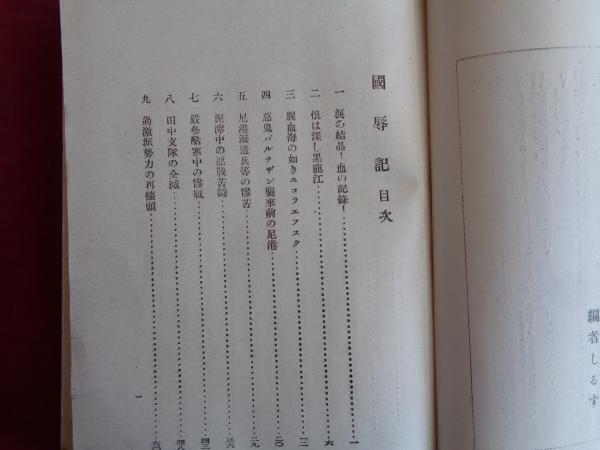 國辱記(溝口白羊編、大正9年)尼港派遣兵の惨苦、厳冬酷寒中の惨戦、田中支隊の全滅、過激派勢力、極東西比利亜の赤色化、パルチザン尼港殺到、尼港民大虐殺、我守備軍の全滅、浦塩過激派軍の暴動、ハバロフスクの激闘、尼港救援軍、海軍側戦死者、過激派とパルチザン、責任問題の論議、陸軍大臣の尼港事件経過説明、尼港事件(ニコラエフスク事変)顛末、ほか