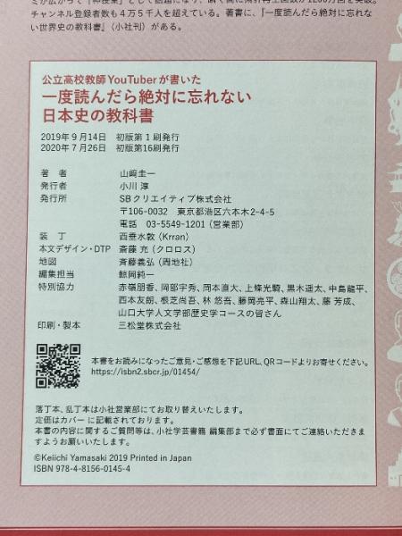 一度読んだら絶対に忘れない日本史の教科書 公立高校教師YouTuberが書いた SBクリエイティブ 山﨑 圭一