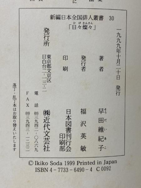 日々燦々: 早田維紀子集 (新編日本全国俳人叢書 30) 近代文芸社 早田 維紀子