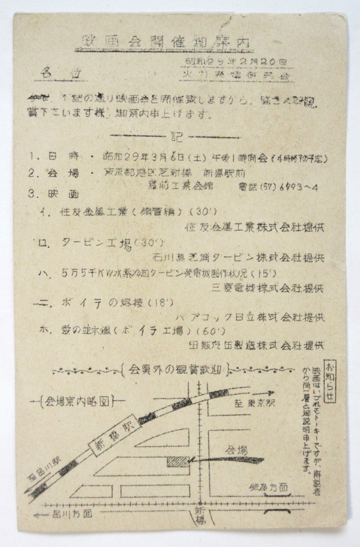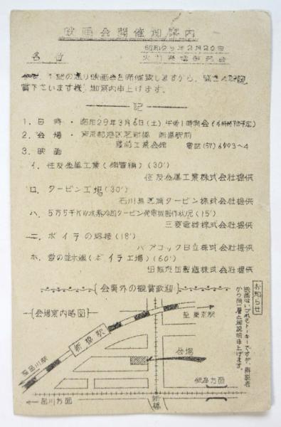 火力発電研究会「映画会開催御案内」葉書